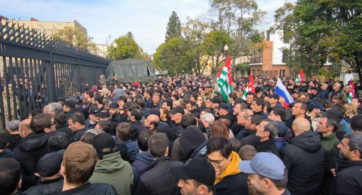 Протестующие у здания парламента Абхазии. Скриншот фото из Telegram-канала "Аиашара" https://t.me/aiashara/7609