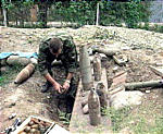 Сотрудники Ножай-Юртовского райотдела УФСБ в селе Замай-Юрт обнаружили схрон и изъяли из него 12 электродетонаторов, 122 мм снаряд, гранаты РГД-5 и Ф-1. Схрон уничтожен. Кроме того райотделом УФСБ совместно с подразделениями ВОВД и военной комендатуры, в населенном пункте Мехкешты обнаружены и уничтожены 3 гранаты РГН, один 23 мм снаряд, одно самодельное взрывное устройство на основе минометной мины.