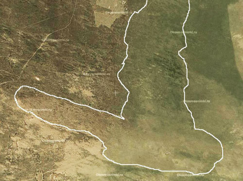Владимир Петров, академик Россельхозакадемии, заведующий сектором лесоаграрного освоения аридных территорий ВНИАЛМИ, показал корреспонденту два разновременных снимка из космоса района Тавн Гашун (земли бывшего совхоза им. Гагарина, расположенные в северо-западной части Черных земель).