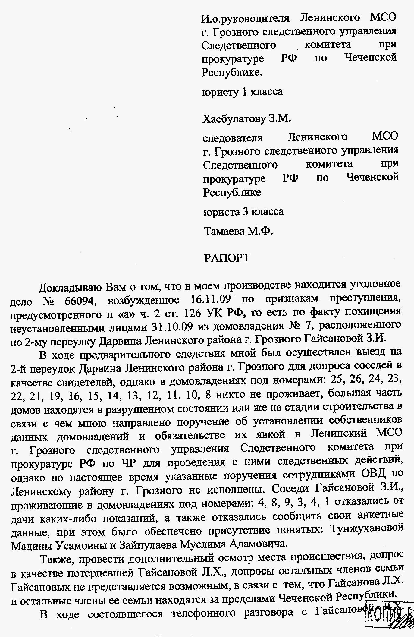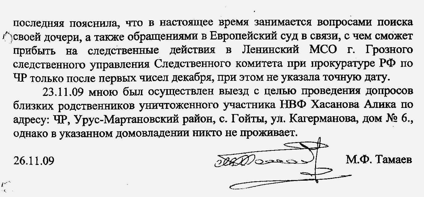- № 396/03-028 c/o-2009 за подписью руководителя отдела Шалинского межрайонного СО СУ СКП РФ по ЧР С.М.Кучина