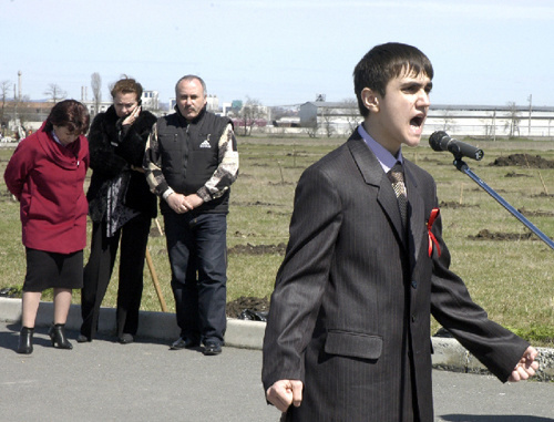 Жертвам террористического акта 1-3 сентября 2004 года посвятил свое стихотворение воспитанник лицея №2 Нальчика Магомед Ульбашев, и слушателями его произведения стали участники акции.