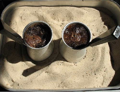 Гуляя по улицам столицы Аджарии Батуми, стоит заглянуть в одну из многочисленных местных кофеен. Батумские кофейни славятся тем, что здесь готовят кофе на песке: в металлическом коробе лежит горячий песок, на нем стоят несколько кофеварок, в которых варится молотый кофе.