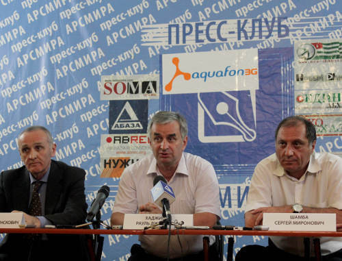 Пресс-конференция Александра Анкваба, Рауля Хаджимбы и Сергея Шамбы состоялась в Ассоциации работников СМИ Республики Абхазия.