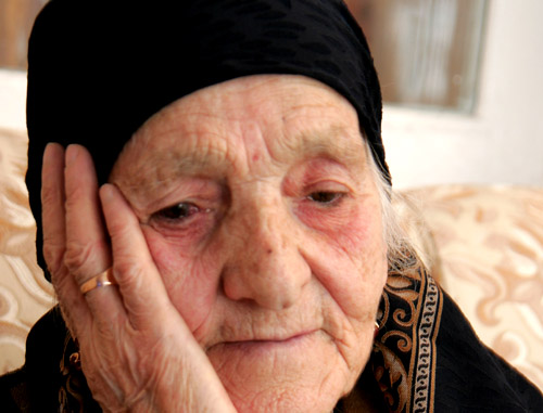 "В ту первую зиму от тифа, голода и холода умерла почти треть спецпереселенцев. Погибло много и наших близких родственников. Но никогда мы, дети, не видели, чтобы плакала наша мать. И только однажды, когда умер отец Оман, мы увидели через щелку в сарае, как мама, запершись там, сдерживая рыдания, била себя палкой, чтобы болью физической заглушить боль душевную", - рассказывает пенсионерка Губати Галаева. Впервые беседа Губати Галаевой и корреспондента "Кавказского узла" опубликована в специальном выпуске газеты "Северный Кавказ", февраль 2012.