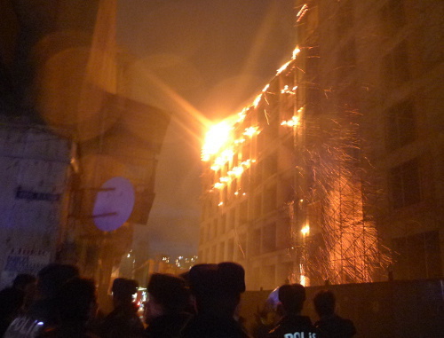Сильный пожар возник в результате взрыва, произошедшего в строящемся высотном здании в центре Баку. Огнем охвачено четыре этажа.
