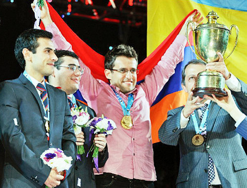 Также "Кавказский узел" ранее сообщал, что сборная Армении стала чемпионом мира по шахматам на VIII командном чемпионате мира, проходившем 15-26 июля 2011 года в китайском городе Нинбо. В состав команды входили сильнейшие шахматисты Армении - Левон Аронян, Владимир Акопян, Габриел Саркисян, Сергей Мовсисян и Роберт Ованнисян.