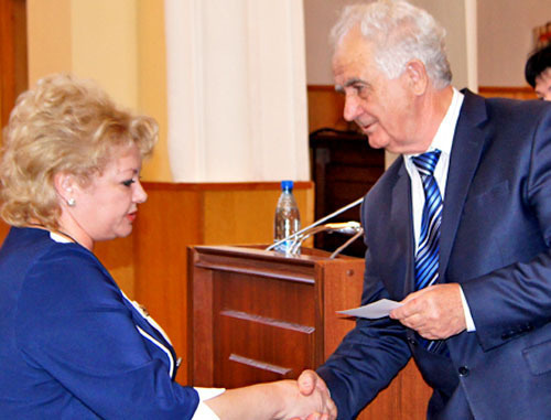 Председатель ЦИК Константин Кадиев вручил депутатские мандаты тем, кто прошел в парламент Северной Осетии пятого созыва от "Единой России" по партийным спискам. Среди них – Сослан Андиев, Людмила Токаева, Станислав Кесаев, Тамара Таболова, Джамбулад Базаев, Александр Реутов, Ахсарбек Гулаев, Ушанги Сакаев, Руслан Течиев, Игорь Гусиев, Руслан Сабанов, которые работали в законодательном органе с 2007 по 2012 годы.