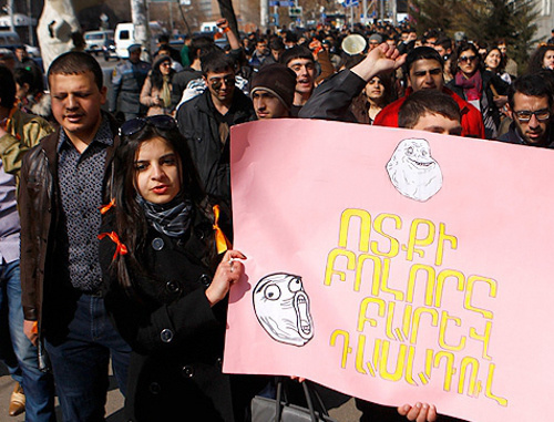 Студенческая акция протеста началась сегодня перед главным корпусом Ереванского государственного университета, после чего участники акции начали совершать обход ереванских вузов. активисты координировали свои действия через социальную сеть Facebook, сообщает корреспондент "Кавказского узла".