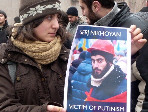Акция памяти застреленного в ходе столкновений в Киеве активиста армянского происхождения Сергея Нигояна и других погибших демонстрантов собрала в Ереване около 100 человек.