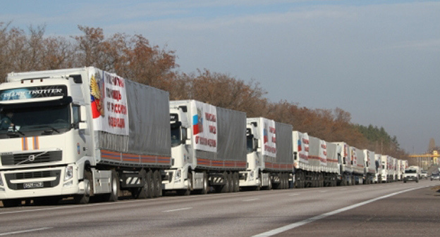 Ранее, 29 октября, заместитель главы МЧС Владимир Степанов заявил, что всего в течение недели автоколоннами МЧС России в Луганскую и Донецкую области планируется доставить до трех тысяч тонн гуманитарной помощи, информирует "ТАСС".