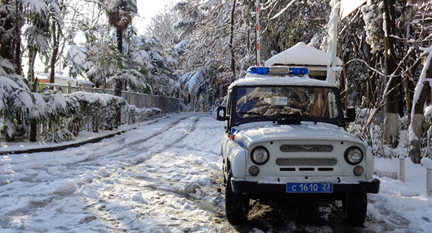 "В связи с обильными осадками в виде снега Упрдор "Черноморье" рекомендует жителям и гостям Сочи и Туапсинского района воздержаться от передвижения на легковом транспорте, особенно не оборудованном зимней резиной, с целью предотвращения риска ДТП и снижения помех для работы снегоуборочной техники", - сказал представитель ведомства, слова которого приводит ТАСС.