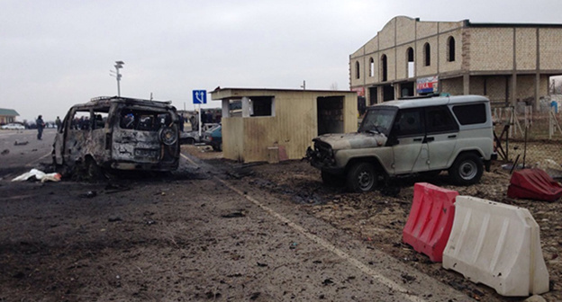 "Кавказский узел" сообщал, что взрыв на посту около села Джемикент произошел сегодня утром. Власти Дагестана подтвердили смерть двоих и ранение 18 человек в результате взрыва, источники сообщали о четырех погибших, с учетом смертника. По данным источника в силовых структурах, от осуществившего взрыв человека остались фрагмент головы, стопа и кисть руки.
