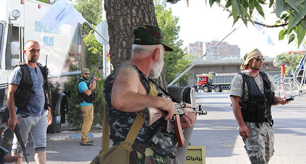 Как писал "Кавказский узел", 17 июля здание полка полиции захватил вооруженный отряд "Сасна Црер", состоящий из представителей оппозиционного "Учредительного парламента". В этот день был убит полицейский, еще шесть человек получили ранения. В районе здания была отключена мобильная связь, а вскоре у мятежников закончились продукты питания. Сегодня захватчики отпустили из здания двоих полицейских в обмен на допуск к ним журналистов в любое время суток. Члены отряда требуют освобождения политических заключенных в стране, в числе которых называют одного из своих лидеров Жирайра Сефиляна.