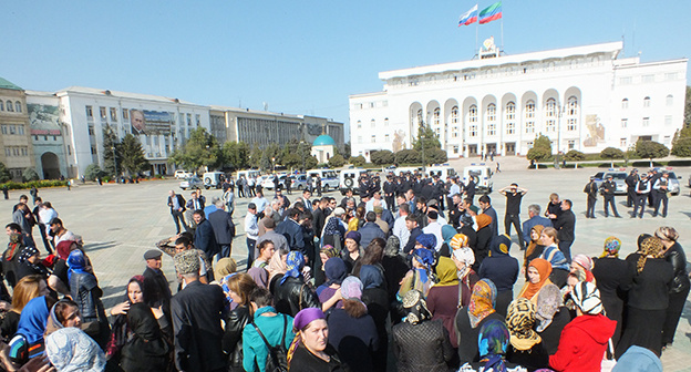 Собравшиеся сегодня на центральной площади в Махачкале люди заявили, что они устали ждать, что ответ им должны были дать в 11.00 часов, но никакой информации нет. Около 13.00 митингующие попытались пройти в здание правительства Дагестана, но полиция помешала им.