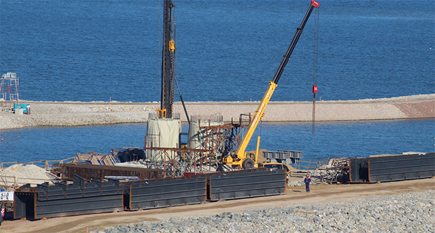 На стройке Керченского моста, который должен соединить Крым и Краснодарский край, уложена первая плита проезжей части. На ее поверхности позже будет обустраиваться дорожное покрытие.
