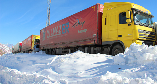 На КПП "Верхний Ларс" со стороны Грузии скопилось 340 грузовых автомобилей. Дорога открыта для всех видов транспорта, использующих цепи противоскольжения. Грузовым автомобилям разрешили выезжать в Россию, пишет сегодня со ссылкой на МВД Грузии сайт "Новости - Армения".