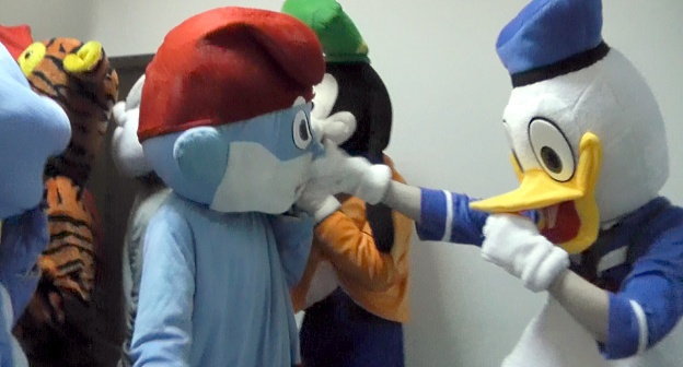 Пикет контролировали около ста казаков и 25 полицейских, перед дверью конференц-зала люди в костюмах сказочных героев требовали пропустить их на встречу с руководителем предвыборного штаба Навального и танцевали, при этом казаки были уверены, что аниматоров пригласил Навальный.