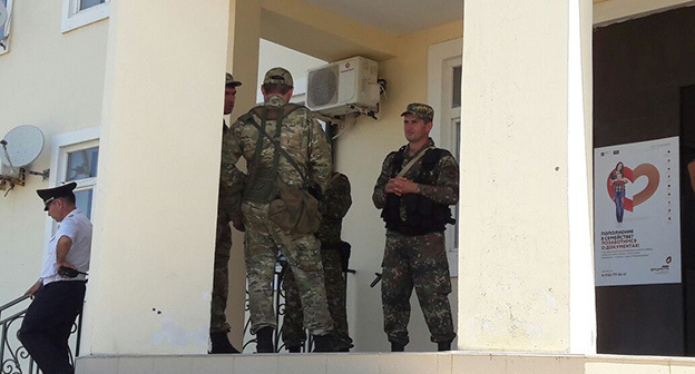 Бойцы ОМОН прибыли к зданию администрации Ногайского района