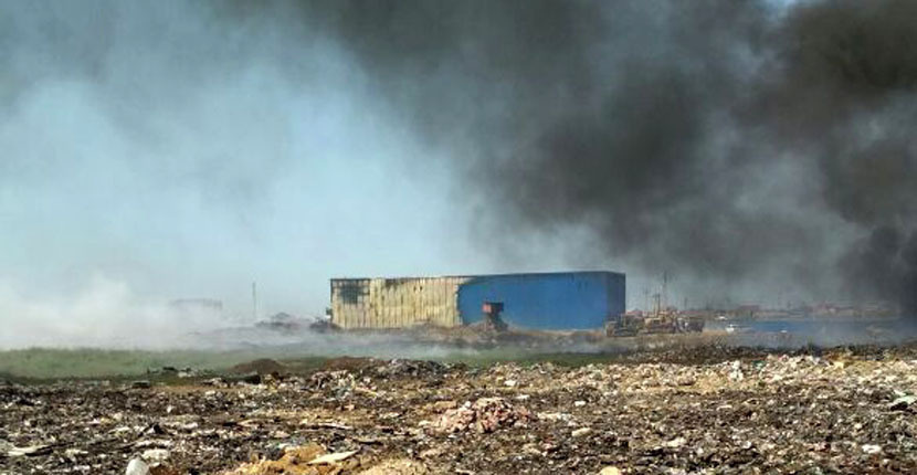 Пожар на свалке уничтожил цех мусоропереработки в Каспийске