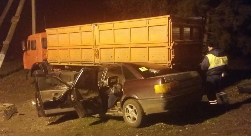 ДТП произошло в станице Новорождественской Тихорецкого района. По предварительным данным, водитель Audi не справился с управлением, выехал на полосу встречного движения, где произошло столкновение с КамАЗом, сообщили сегодня в региональном управлении МВД.