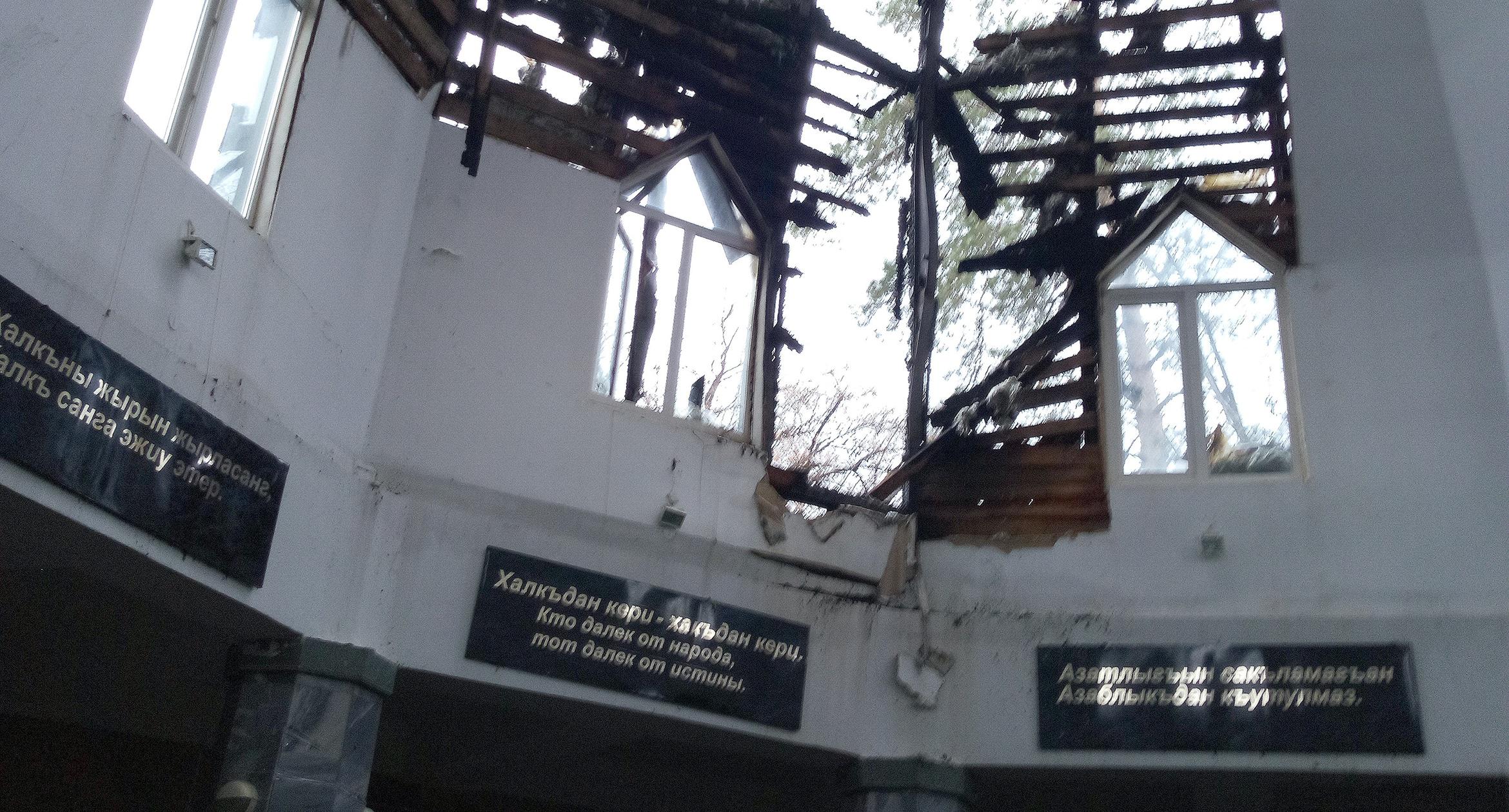 Почти три часа понадобилось пожарным, чтобы полностью потушить огонь на крыше мемориала жертвам репрессий балкарского народа в Нальчике.