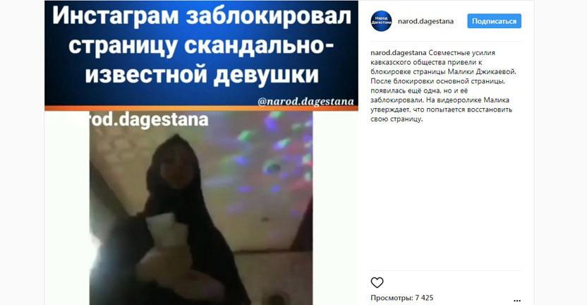 О том, что Instagram заблокировал страницу танцовщицы в хиджабе по многочисленным просьбам пользователей соцсети, сообщил сегодня ночью дагестанский паблик narod.dagestana.