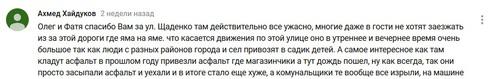 "Олег и Фатя, спасибо вам за ул.Щаденко. Там действительно все ужасно, многие даже в гости не хотят заезжать из-за этой дороги, где яма на яме. Что касается движения по этой улице, оно в утреннее и вечернее время очень большое, так как люди с разных районов города и из сел привозят в садик детей. А самое интересное, как там кладут асфальт. В прошлом году привезли асфальт, где магазинчики, а тут дождь пошел, ну, как всегда, так они просто засыпали асфальт и уехали. И в итоге стало еще хуже", - написал Ахмед Хайдуков.