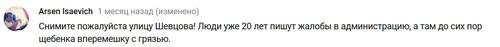 "Снимите, пожалуйста, улицу Шевцова! Люди уже 20 лет пишут жалобы в администрацию, а там до сих пор щебенка вперемешку с грязью", - написал в комментарии к видео Arsen Isaevich.