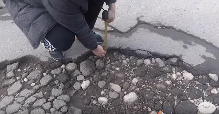 По ее словам, состояние дорожного покрытия на улице Щаденко также катастрофично. Олег Доценко в видеоролике измерил одну из ям на Щаденко, ее глубина составила 7 сантиметров.