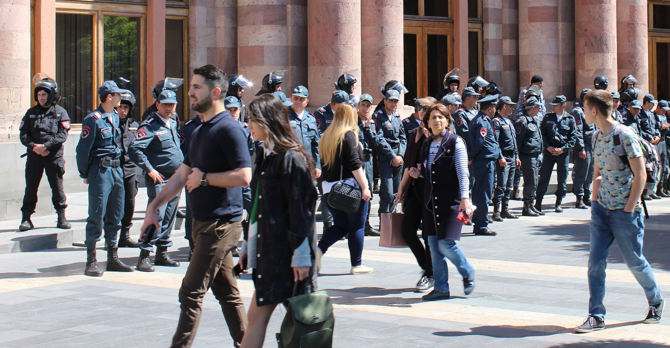 Как писал "Кавказский узел", сегодня парламент Армении начал заседание по избранию премьер-министра на фоне протестов по всей стране. На митинге на площади Франции депутат Никол Пашинян рассказал о тысячах протестующих в разных городах страны и заявил о начале "мирной революции". После митинга протестующие блокировали здания госучреждений, среди которых оказались Генпрокуратура, судебный департамент, МИД.