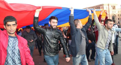 Одновременно с этим от площади Республики прошло траурное шествие, организованное движением оппозиции. Участники этой акции пешком прошли к мемориалу жертв геноцида «Цицернакаберд», отмечает "Газета.ру".