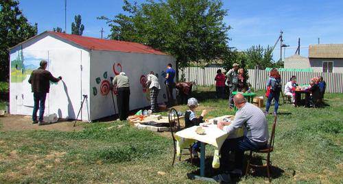 Арт-акция продлилась три часа. Гараж покрылся красочными рисунками. Участники акции нарисовали дома своей мечты, а затем отдохнули на пикнике, спели под баян и гитару.