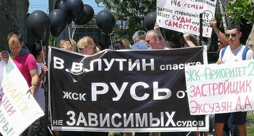 "Нашему застройщику Анзору Пруидзе грозит до десяти лет тюрьмы. У него самое большое количество высотных объектов в Сочи, около тридцати... Кто будет достраивать наши дома? Поэтому мы требуем свободу Анзору Пруидзе. Он сидит уже полгода, а стройки стоят. 6 июня вновь состоится продление стражи. Мы все придем на суд", - заявил корреспонденту "Кавказского узла" обманутый дольщик из ЖК "Туапсинский" Самвел Абгонян. Участники митинга держали в руках плакаты с требованием освободить Пруидзе.