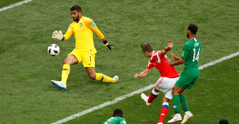 Матч-открытие чемпионата мира по футболу между сборной России и Саудовской Аравии завершился в Москве со счетом 5:0 в пользу хозяев мундиаля. Счет был открыт на двенадцатой минуте встречи, первый гол в ворота сборной Аравии забил игрок "Краснодара" Юрий Газинский.