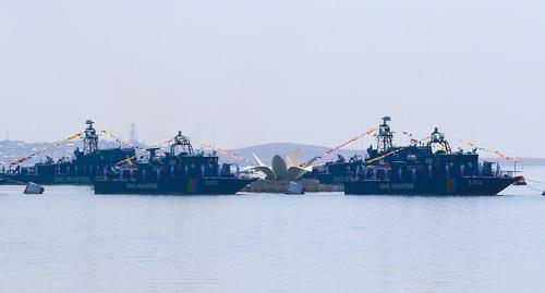 В Бакинской бухте выстроились корабли ВМС Азербайджана и катера береговой охраны Пограничных войск. Авиация была представлена американскими вертолетами Bell-412, российскими МИ-24, Ми-24G, Ми-35M, КА-17, МИ-8 и самолетами СУ-25, МИГ-29. Военные самолеты продемонстрировали фигуры высшего пилотажа.