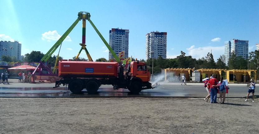 В администрации Волгоградской области корреспонденту "Кавказского узла" сообщили, что из-за жаркой погоды в Волгограде ежедневно специальные машины поливают водой дороги и пешеходные зоны, на всех объектах массового пребывания людей дежурят медики, постоянно пополняются запасы питьевой воды.