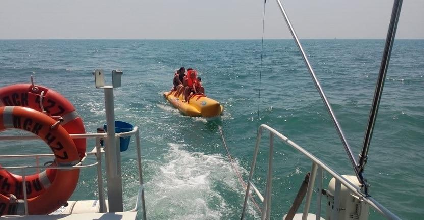 Гидроциклы, с прикрепленным к ним надувным бананом, сломались в 800 метрах от берега. Отдыхающих уже начало относить в открытое море, когда их заметили патрулировавшие акваторию Черного моря военнослужащие.