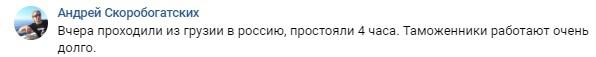 "Вчера проходили из Грузии в Россию, простояли 4 часа. Таможенники работают очень долго", - сообщил сегодня Андрей Скоробогатских.
