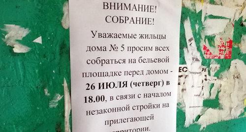 Сообщение о захвате придомовой территории поступило на SMS-сервис "Кавказского узла" 25 июля. "Жители 80-квартирного дома по ул. Новоселов 5 просят Вас осветить ситуацию с незаконным захватом территории общего пользования у детского сада 47", - написал автор сообщения.