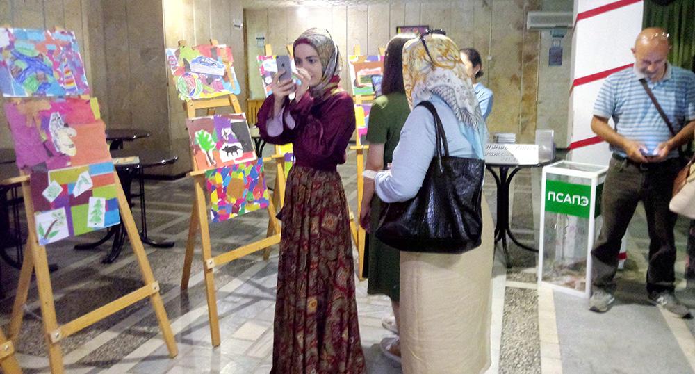 Картины, представленные на выставке-продаже, выполнены детьми сирийских беженцев, рассказала корреспонденту "Кавказского узла" активистка организации "Жьегу" Ольга Эфендиева-Бегрет.