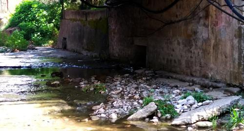 Илья рассказал, что раньше тут не было этого дома, и открытая ливневая канализация по улице Октябрьская шла прямо до федеральной трассы и только потом "ныряла" по дорогу, в коллектор, который выходил в море. "Потом понаставили ларьки, загромоздили улицу домами и гостиницами, вывели со своих домов в городскую ливневую канализацию ливневки, причем, не только сточные, но и канализационные воды сюда сбрасывают. Вонь, бывает, стоит такая, что просто невозможно дышать", - сказал он.