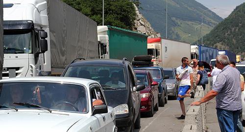 С раннего утра на подъезде к пункту пропуска ежедневно наблюдается большое скопление автомобилей, передает корреспондент "Кавказского узла".