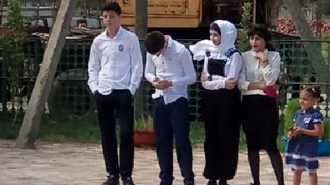 На праздновании Дня знаний было от силы 50 человек, утверждает Гульжанат Ахмедова. "Было больше шаров, чем детей, а от 9-го "А" класса на линейке сиротливо стояли две девочки и два мальчика", - сказала она.