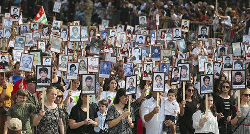 После парада по улицам Сухума прошли участники акции «Бессмертный Полк». В акции  приняли участие около 1500 человек из всех районов республики. В их числе родственники погибших в войне 1992-1993 годов, они держали в руках фотографии близких людей, которые не вернулись с фронта или же ушли из жизни уже после войны, передает «Sputnik-Абхазия».