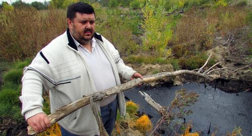 У самого въезда на склад образовалось озеро жидких нефтяных отходов. Ульянов длинной палкой измерил глубину озера. "Более метра у края. Это опасно для детей, которые сюда могут беспрепятственно заходить. Сколько случаев в стране было, когда дети тонули вот в таких нефтяных трясинах", - сказал Алексей Ульянов "Кавказскому узлу".