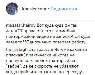«Эта трасса в Чегеме какая-то опасная(( практически никогда не пропускают человека, который на "зебре", даже скорость не убавляю,т когда приближаются к пешеходному переходу.... вот и результат», - написал tim_astagfi.