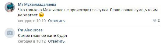 "Что только в Махачкале не происходит за сутки. Люди сошли сума, что им не хватает!" - прокомментировала новость о покушении на певицу участница группы "Подслушано в Дагестане" соцсети "ВКонтакте" Мт Мухаммадалиева.