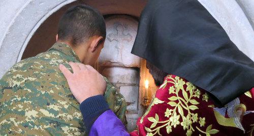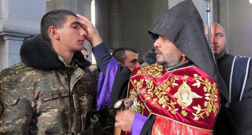 "Когда мой Геворг родился, наша молодая семья занималась строительством дома, налаживанием хозяйства. Крестины как-то все время откладывались. Потом он вырос и не проявлял желания... Видимо, армия сильно изменила моего Геворга", - рассказала корреспонденту "Кавказского узла" Ефраксия Магинян из Кашатагского района.