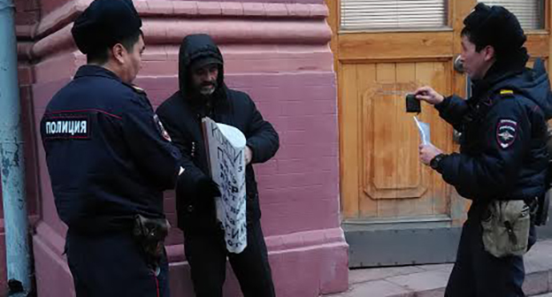 Мужчина простоял на пикете около полутора часов. Сотрудники правоохранительных органов записали его личные данные, после чего сели в машину неподалеку и еще около получаса сидели там, наблюдая, а потом уехали.