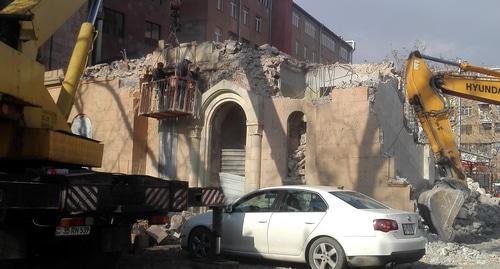 "Демонтаж фасадной части здания производится варварски и специальными средствами. Вновь налицо игнорирование закона и отсутствие правосознания. Вновь проводится акция против культуры, на этот раз – со стороны голодной и проклятой "бархатной фракции", - отметила Заруи Постанджян.